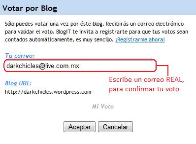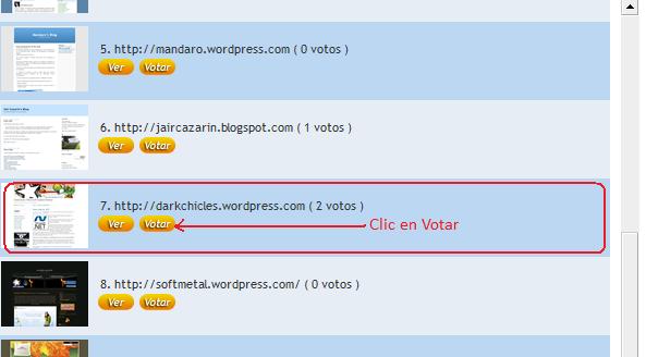 2.- Busca el blog de https://darkchicles.wordpress.com y damos clic en el boton Votar