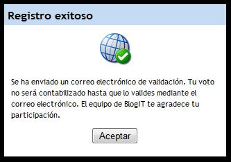 Aparecera una ventana donde tendras que escribir tu correo para que posteriormente confirmes tu voto dando clic en un link que llegara a tu correo: