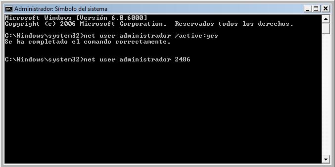 Si tu Winodows Vista esta en español escribimos lo siguiente:
