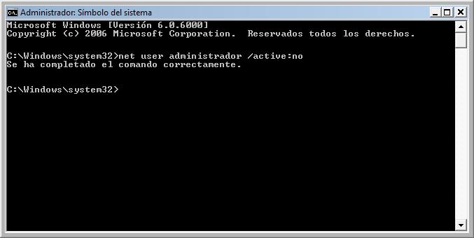 *Dato: Para quitar la cuenta de administrador tendremos que escribir: