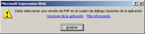 Si al tratar de correr una pagina PHP en Expression Web nos aparece el siguiente error: