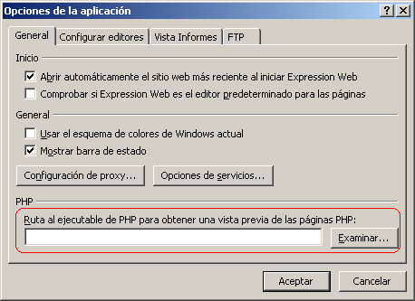 Entonces tendremos que configurar nuestro servidor de PHP para que funcione con Expression Web.