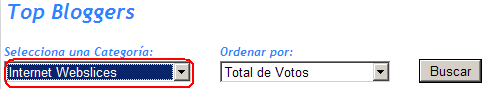 En la sección de Top Bloggers Seleccionamos la categoría de Internet WebSlices y presionamos buscar