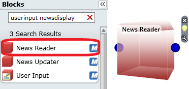 5.-Seleccionamos el cubo “News Reader” y lo colocamos en el área de trabajo