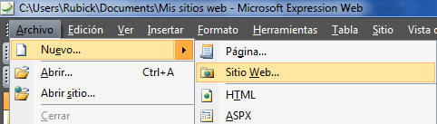 1.-Abrimos Expression Web y creamos un nuevo Sitio Web Vacio