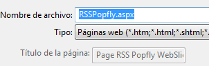 9.- Guardamos la pagina con el nombre de RSSPopfly.aspx y probamos dando clic en el icono de vista previa