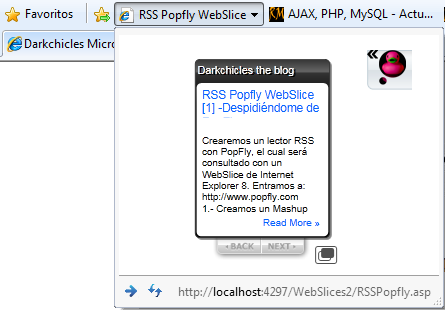 Una vez agregado nuestro WebSlice a la barra de favoritos el trabajo final queda: