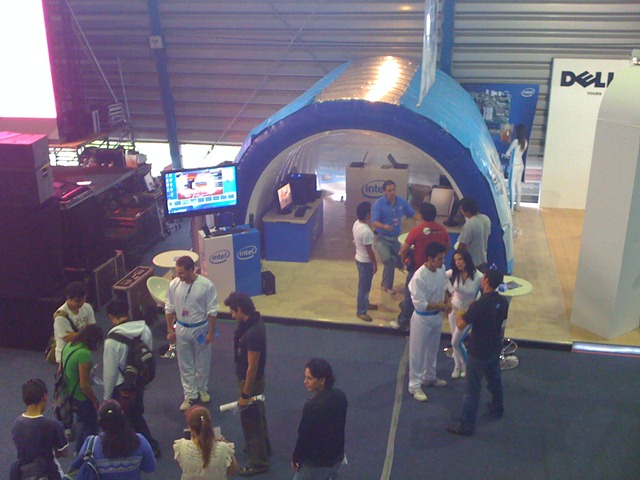 Pódium de Área de entretenimiento, Stand de Dell, Stand de Intel, una sala para descansar muy rico.