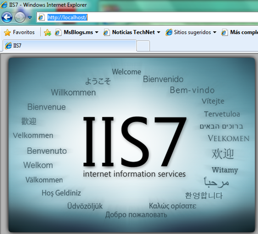 Agradeceria tu ayuda en lo siguiente active iis7 sin problemas, me aparece la administracion del iis en herramientas administrativas ahi compruebo que ya esta isntalado de echo he creado un directorio virtual pero al entrar desde el Explorer no me musetra la pagina que he configurado como de inicio o default la cual muestra la palabra «HOLA», sno que me muestra una pagina en blanco. Entonces Pruebo con http://localhost/ y si me carga pero una pagina en blanco y no la pagina del IIS7 garndote que muestras en tu blog.