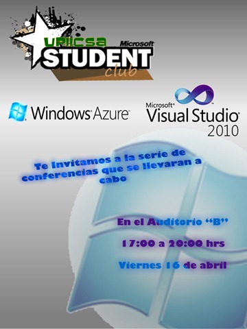 Como parte del lanzamiento de Microsoft Studio 2010 y Windows Azure, la Universidad UPIICSA participara con un ciclo de conferencias orientadas a estas tecnologías, la cita es: