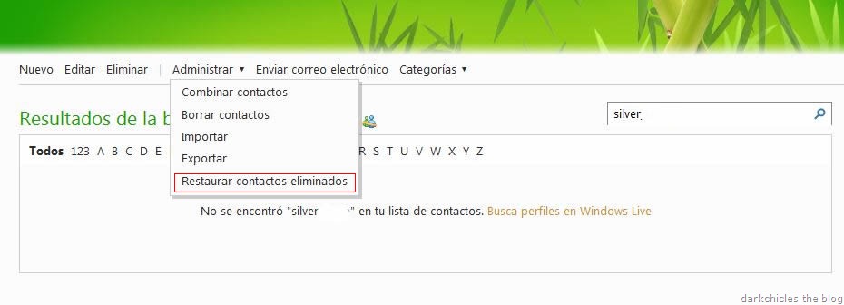 Si desean pueden buscar el nombre del contacto para comprobar que efectivamente fue restaurado en su lista de contactos, tanto del correo electrónico como del Windows Live Messenger
