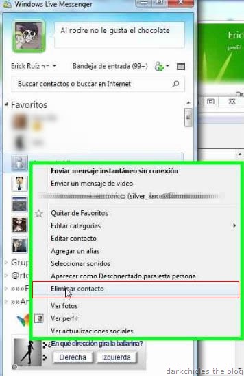 Por error yo elimine a uno o varios contactos desde el Windows Live Messenger de la siguiente manera: