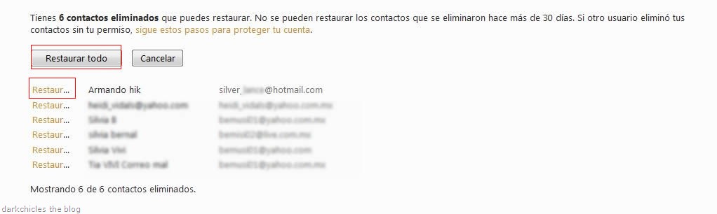 Para nuestra tranquilidad dentro de nuestro correo electrónico Windows Live existe una opción poco conocida, la cual es la de “Restaurar contactos eliminados”.