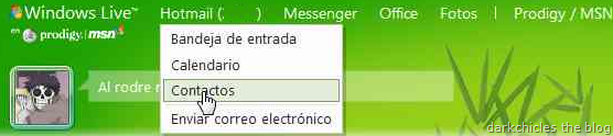 Una vez en que accedimos a nuestra cuenta de Windows Live en el encabezado superior elegimos en el menú la opción de “Contactos”