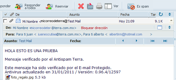 Si todo sale correctamente ustedes verían el correo algo similar a esto: