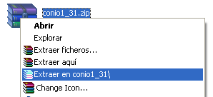 Descomprimimos el contenido del archivo conio1_31.zip
