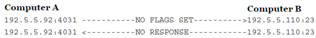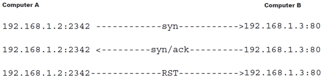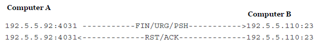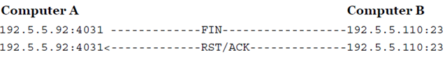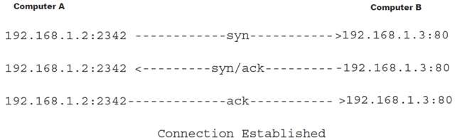 - El cliente (Computer A) inicializa la conexión con el servidor (Computar B) enviando solamente un paquete con la bandera syn.